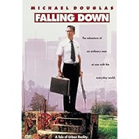 (More customer reviews)This is a powerful film, but I personally don't look at it as some type of social commentary or condemnation of modern society, although it certainly touches on some of the problems that will always exist among human beings. Falling Down may well have a potent effect on anyone watching it, though. It always leaves me feeling really, really weird because it touches on so many things we all have to put up with each day, presents a monster whom I can't help but sympathize with in some degree, provides us with a hero whose own life is rife with undeserved problems, and runs its course atop a strong undercurrent of sadness. Michael Douglas gives one of his better performances as Bill Foster, an unremarkable man who finds his world torn apart and finally just snaps. He has lost his wife and little girl (which is his own fault); he's lost his job, the one thing that made him feel important; he just wants things to be like they used to be. He doesn't want to sit in traffic with no air conditioning or pay almost a dollar for a little can of soda or see plastic surgeons living the life of Riley while he can't even support his little girl. His journey "home" is an extraordinary one, and the kinds of awful people he encounters on the way do nothing to help his mentality. It's hard not to cheer him on when he manages to effect an escape from a couple of gangsters trying to rob him, but acts such as holding a burger joint up just because they refuse to serve him breakfast after lunch time is, obviously, way out there. No matter what terrible things he does, though, I can't get completely past the fact that he earnestly wants to see his little girl and give her a present for her birthday; in a clearly psychotic way, I find this movie somewhat touching, and that only makes the whole experience more depressing than it already is.