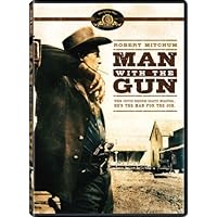 (More customer reviews)There should be a sub-genre in the Western called 'the Robert Mitchum Western'. Mitchum's brilliant, idiosyncratic, usually undervalued Westerns import his film noir persona to etch some compellingly dark character studies, and bring an elegiac world-weariness prefiguring the films of Sam Peckinpah. 'Man with the gun' is one of his best. Directed by Orson Welles protege Richard Wison, it is a stark, monochrome beauty, full of chilling silhouettes and terrifying outbursts of savage violence, as Mitchum comes to tame a town terrorised by a monopolist with a private army. Mitchum's regression from soft-spoken stranger to deranged murderer, with a host of dark emotions in between, is a marvel of expressive, physical acting.
